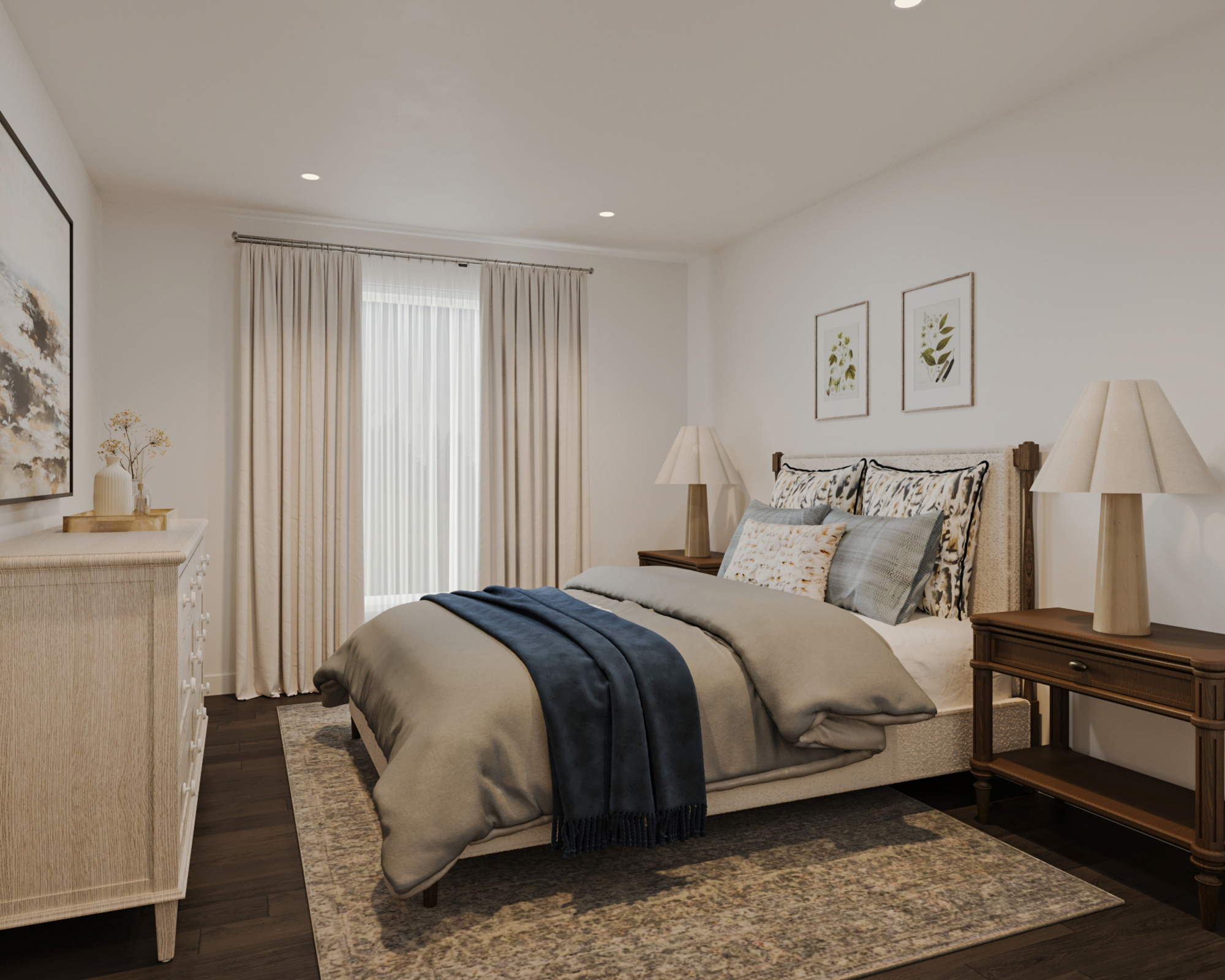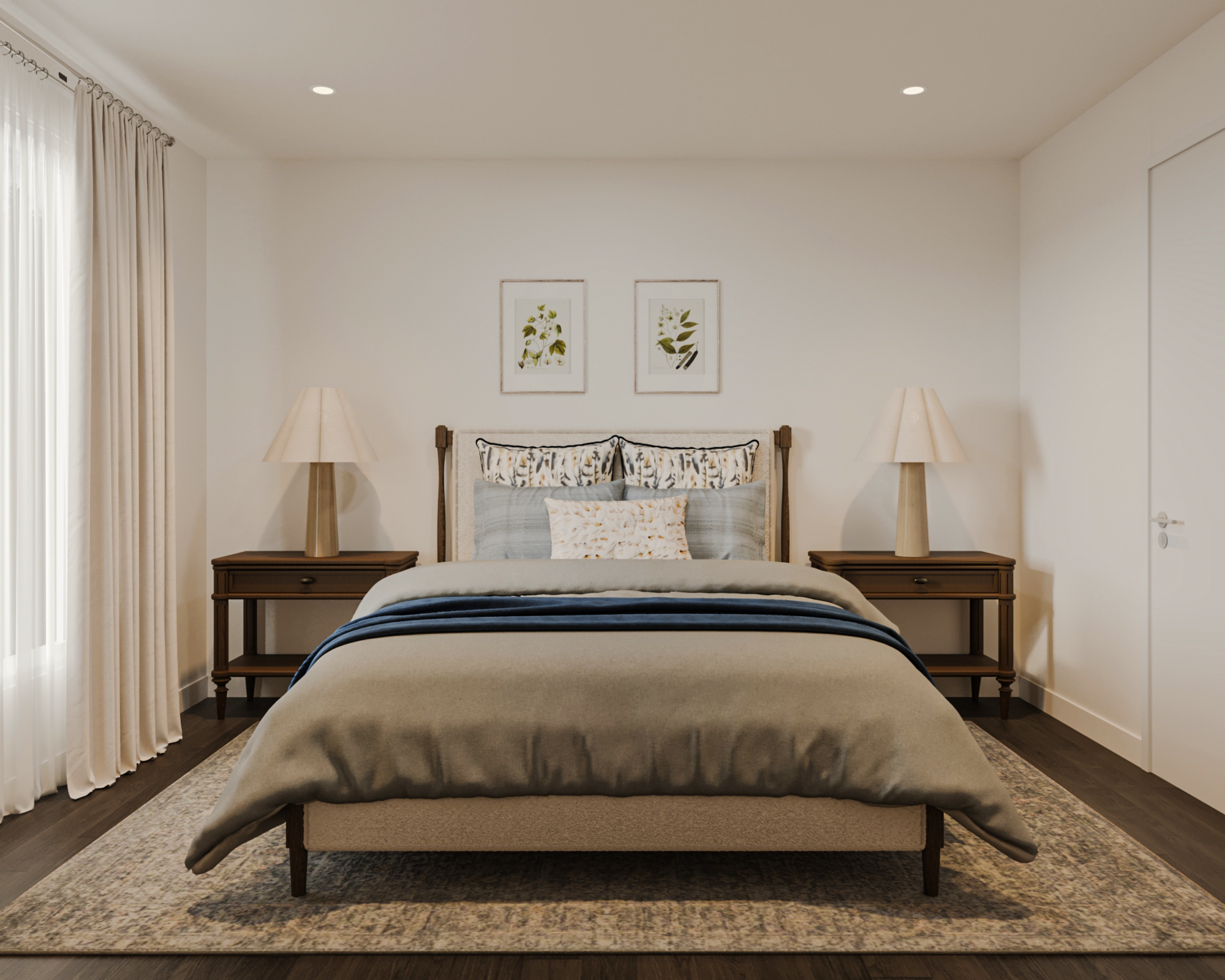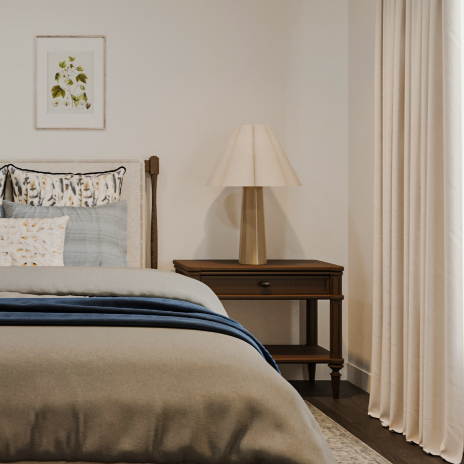 Eight drawer dresser with tapered legs and a whitewash finish provides ample storage.