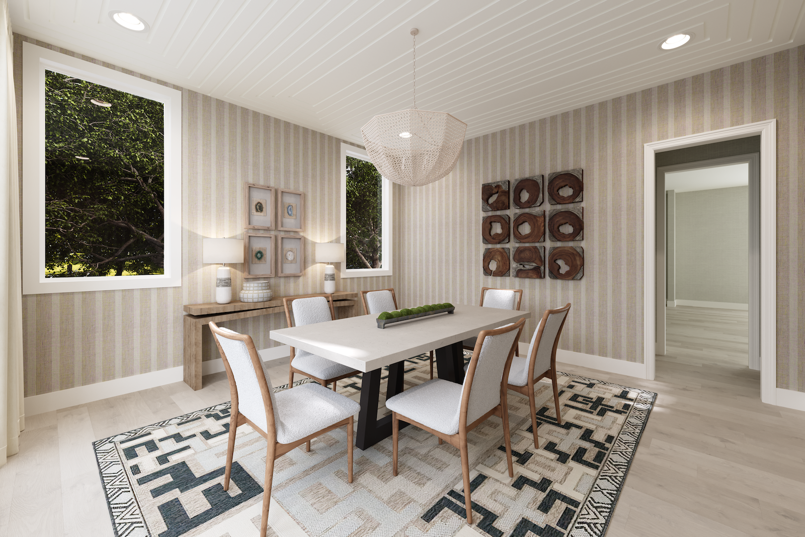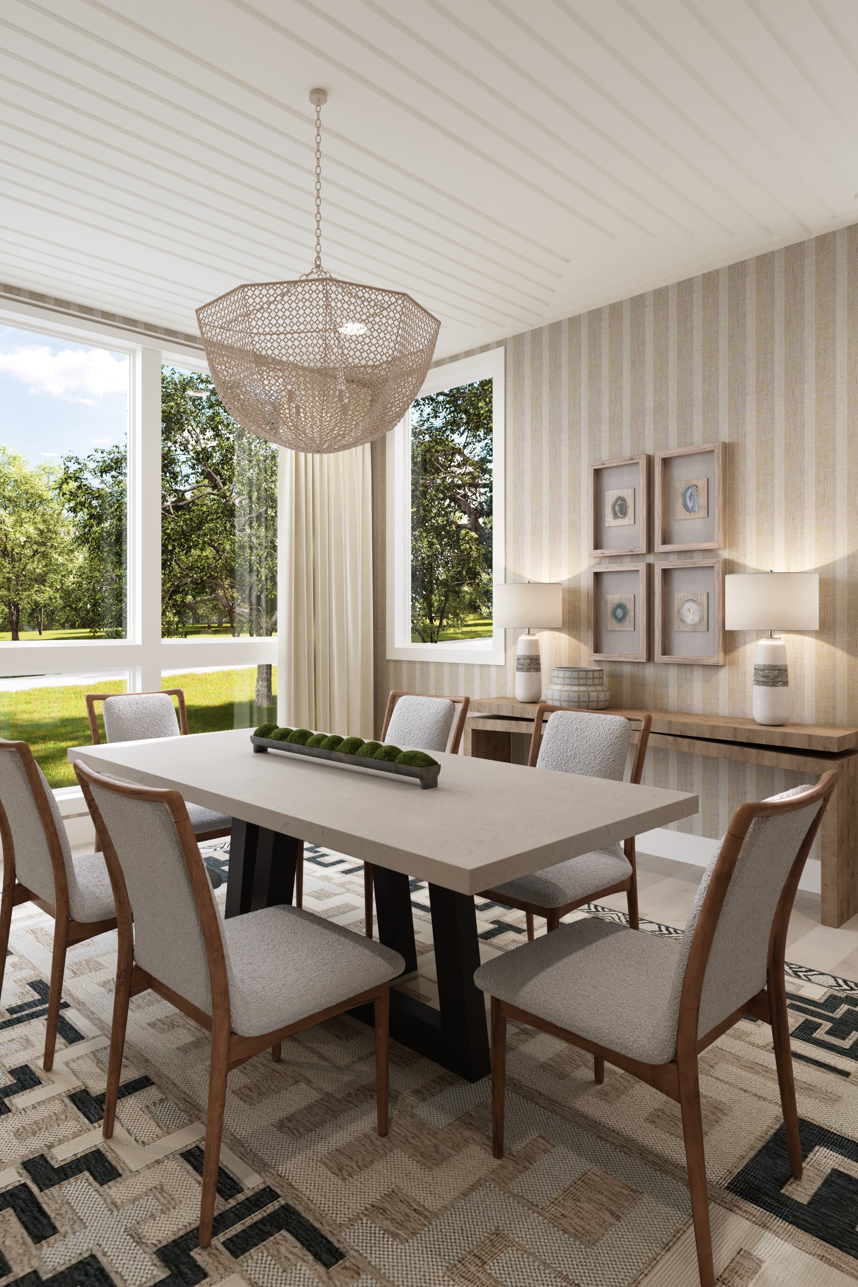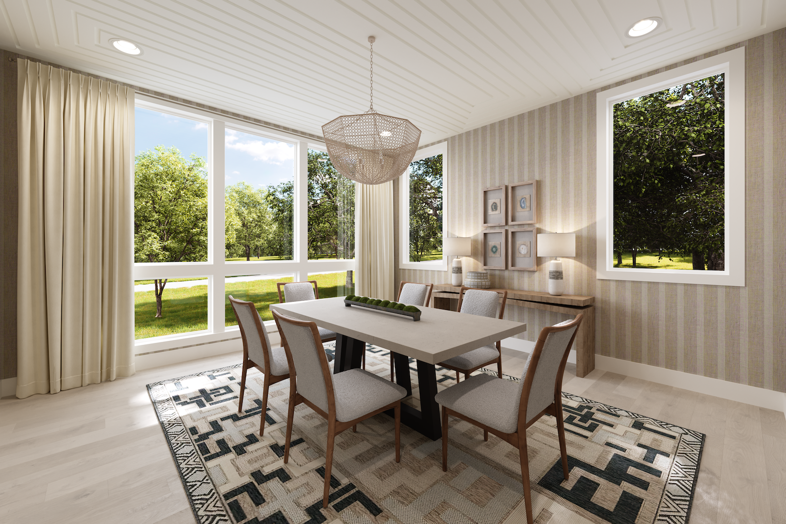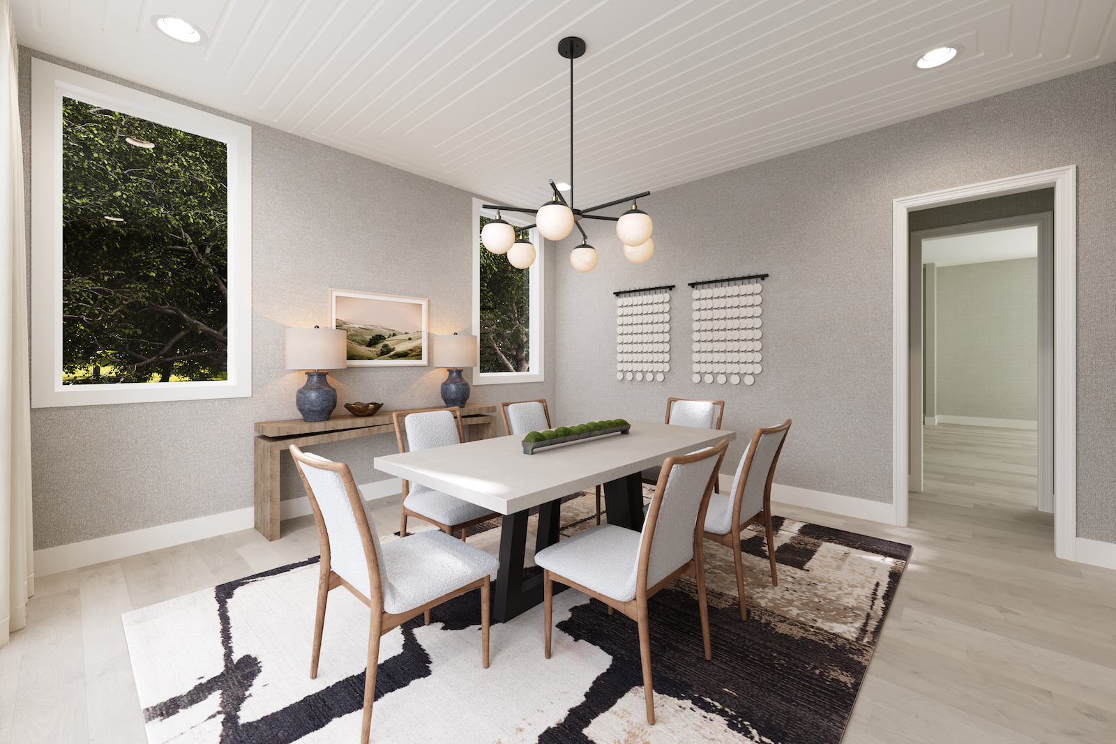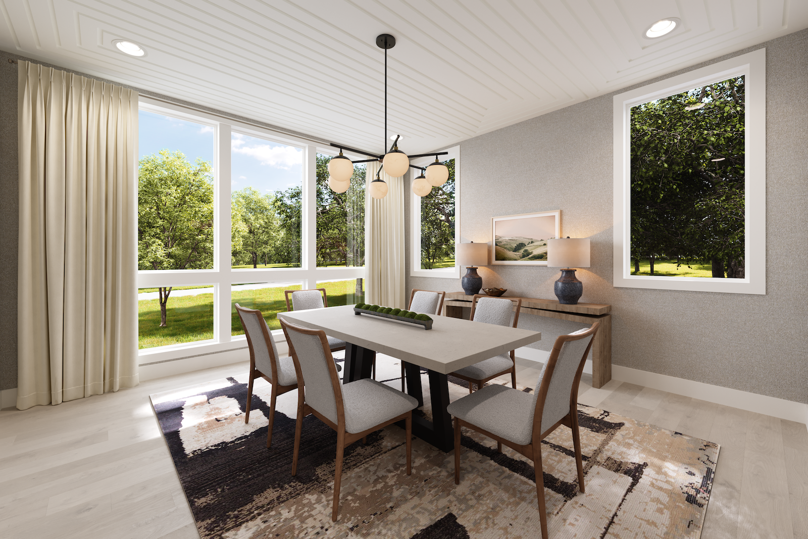 The chandelier in our Meadow option combines six faux alabaster shades with oil rubbed bronze.